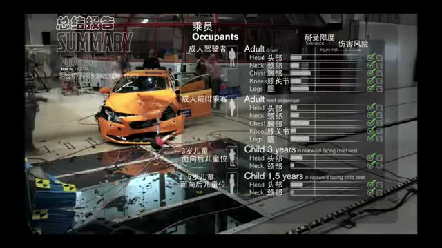 新沃尔沃V40正面碰撞崩溃吸能测试